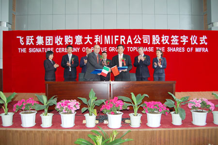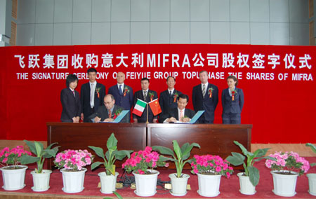 飛躍集團(tuán)與意大利MIFRA公司通過(guò)一年半時(shí)間的接觸、溝通和交流,達(dá)成了進(jìn)行合作合資的共識(shí)。此次簽字儀式的舉行正是雙方強(qiáng)強(qiáng)攜手、優(yōu)勢(shì)互補(bǔ)、謀求雙贏而結(jié)出的碩果。